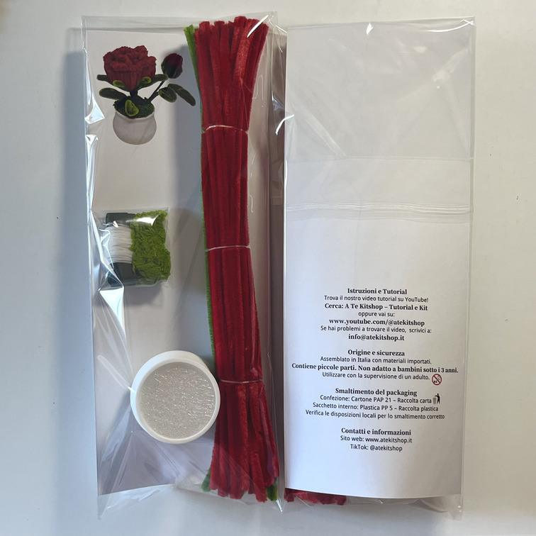 • 18 scovolini colorati per i petali (colore a scelta: rosso, rosa o giallo)