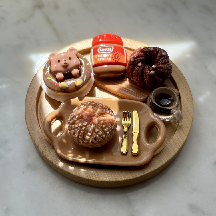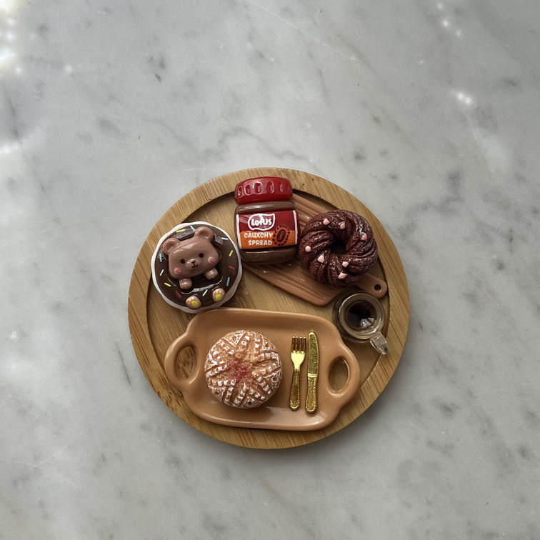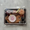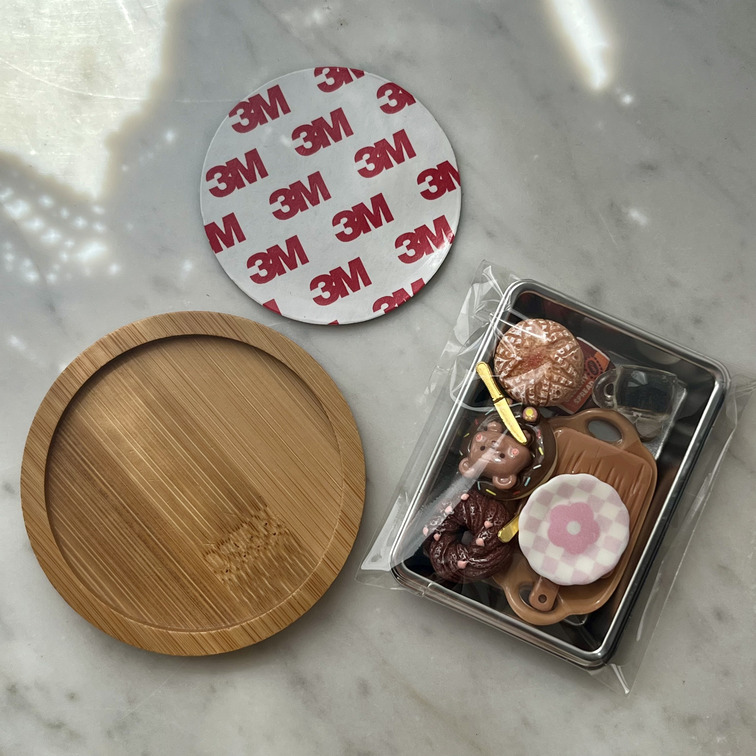 Questo kit in miniatura ti arriva smontato: basta applicare i magneti adesivi (inclusi) sui 4 dolcetti mobili e creare la tua composizione preferita sul vassoio in bambù.
