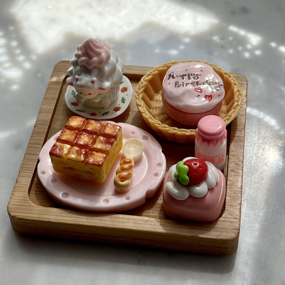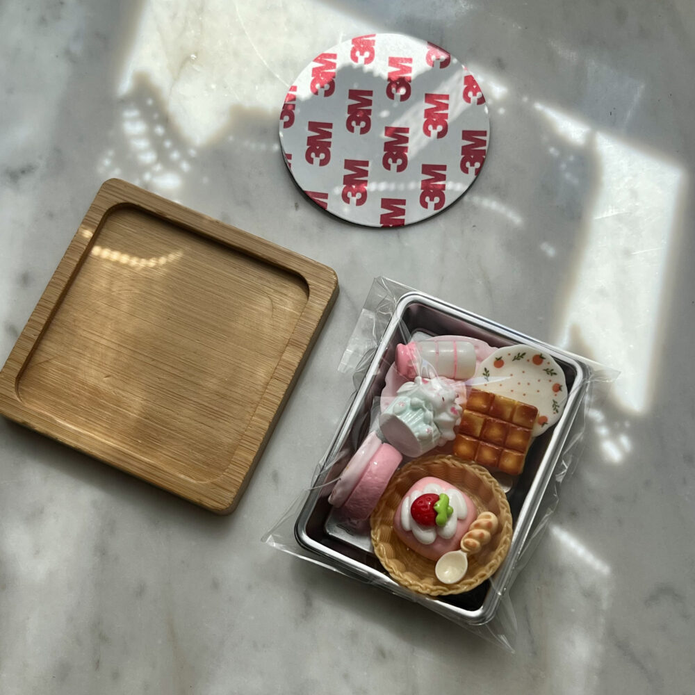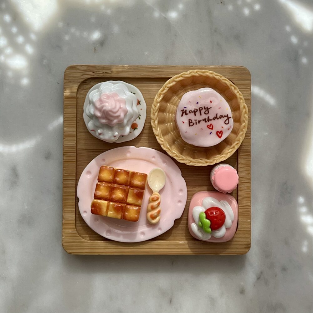 • 4 elementi magnetici rimovibili: Fetta di torta “Happy Birthday”, panna con fragola, gelato decorato, waffle quadrato