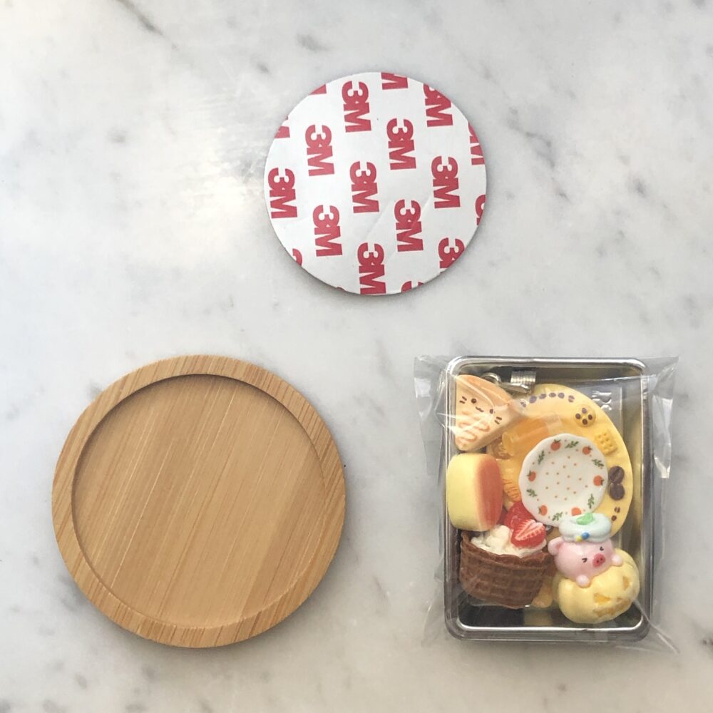 • 1 vassoio in bambù naturale (7,5 × 7,5 cm)