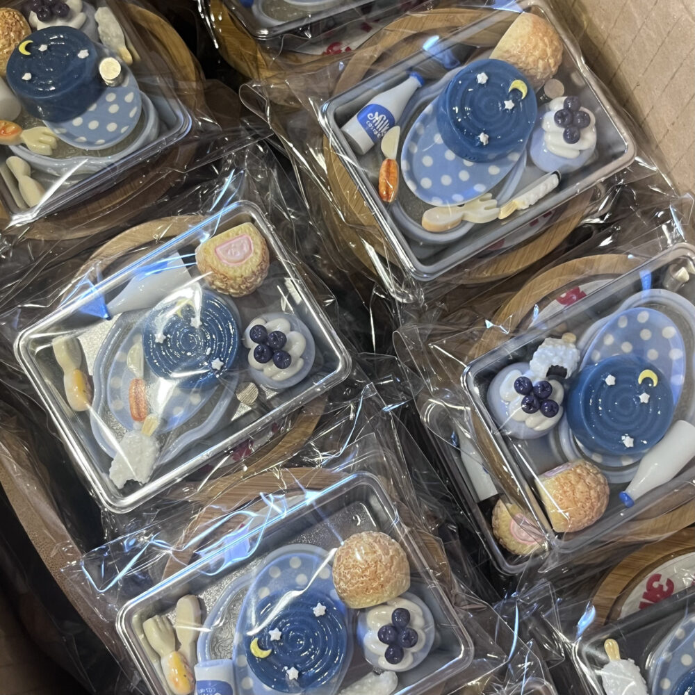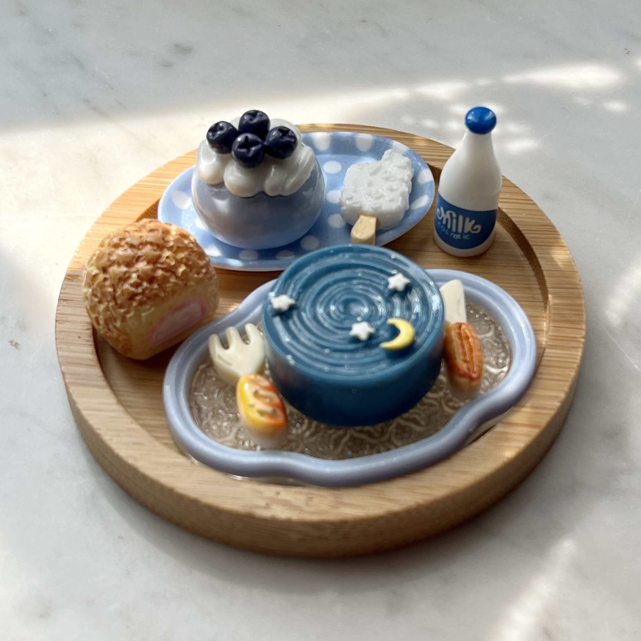 Il kit “Notte Dolce e Panna” combina i toni del blu con la cremosità dei dolci fatti a mano.