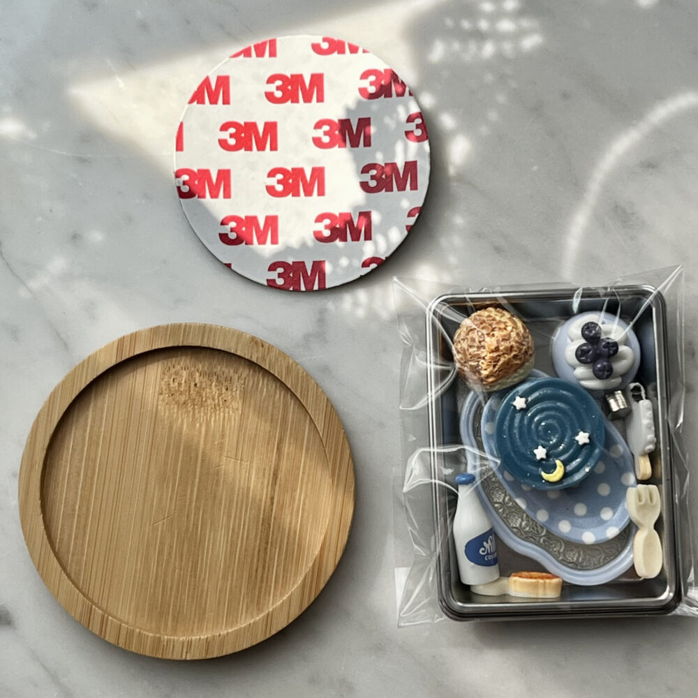 • 1 vassoio in bambù naturale (7,5 × 7,5 cm)